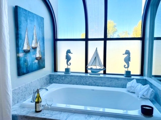 Having this Penthouse Suite space, you'll feel pampered in the spacious master bedroom, with fireplace, on-suite bathroom, and incredible ocean views from every room. The living area includes living room, dining room and nicely equipped kitchen. The cozy fireplaces in the living room and bedroom is a wonderful treat to come back to after spending the day relaxing at the beach, and then finishing the day on the terrace with a sunset view. Very romantic!